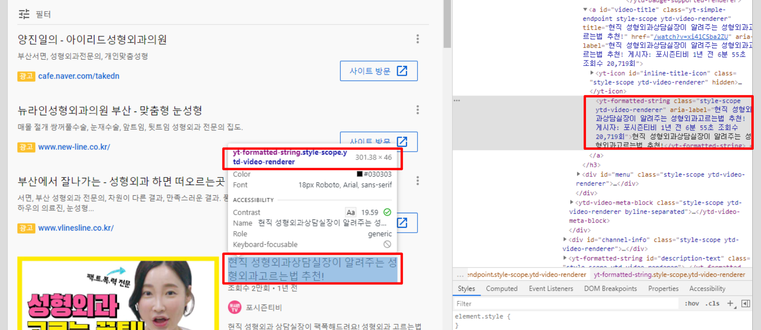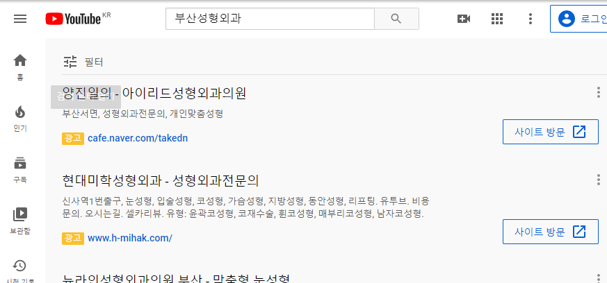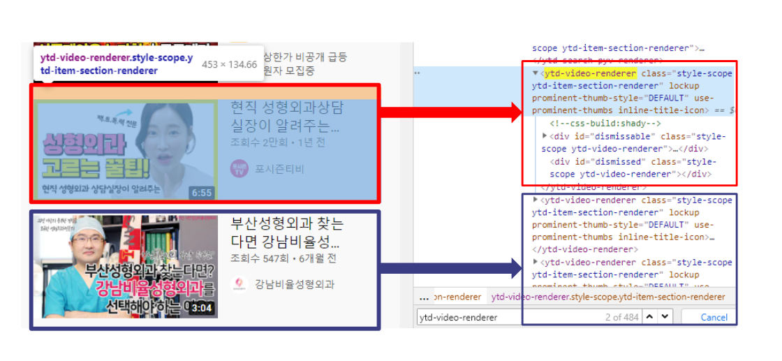 - 검색 후의 url을 'www.youtube.com/'에서 'www.youtube.com/results?search_query=부산성형외과' 변경하기