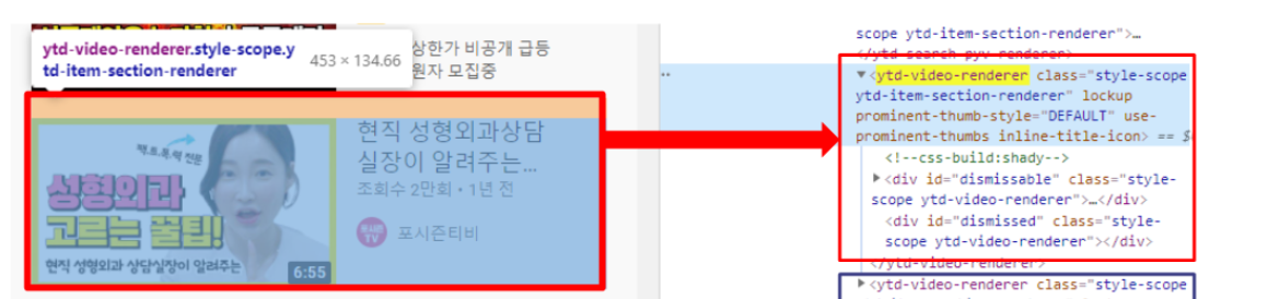유튜브 검색 결과 스크래핑