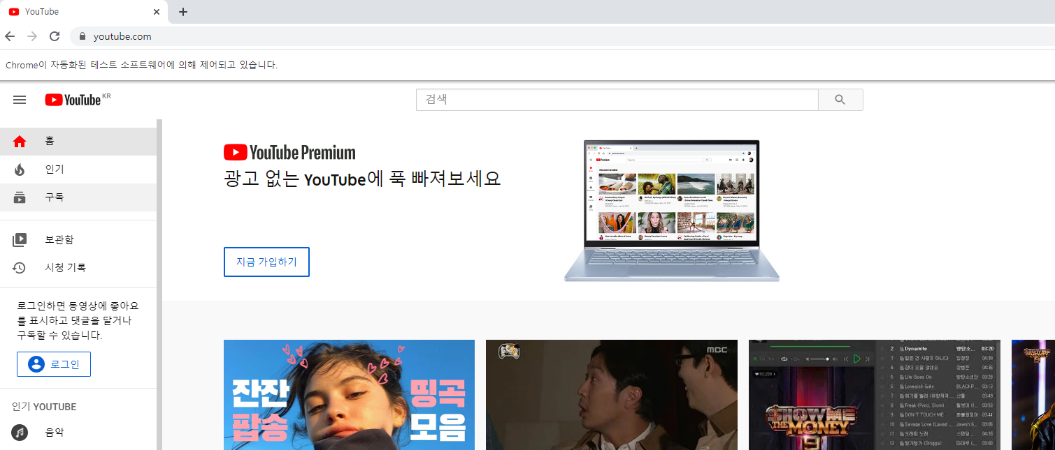# 접속 url url = "https://youtube.com/" # 검색 키워드 keyword = "부산성형외과" # 스크롤을 어디까지 내리는지 기준 finish_line = 10000유튜브 홈페이지 접속