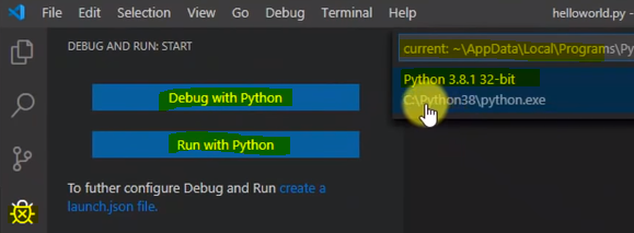 - [Run] -> [Debug with Python] or [Run with Python] -> [Python] 검색 후 선택 -> 다시 생성한 Python file을 선택 후에 [Run with Python] 하면 터미널 창에서 Print("아무거나") 실행