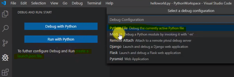 - [Run] -> [create a launch.json file.] -> [Python File Debug the curruently active Python file] 누리기