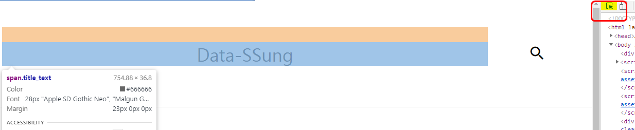 2. [ctrl+shift+I] -> [select an element in the page to inspect it] 버튼 누르기