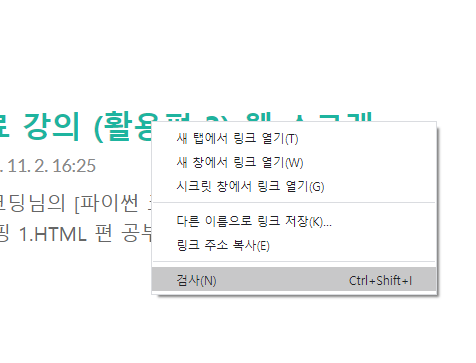 1. 크롬에서 마우스 커서를 원하는 곳을 지정한 후