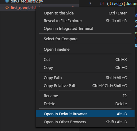 # page HTML 가져오기 import requests res = requests.get("http://www.google.com") # 정상 출력 확인 res.raise_for_satatus() print("웹 스크래핑을 진행합니다.")- step2. 가져온 page의 HTML 파일 확인 및 저장하기